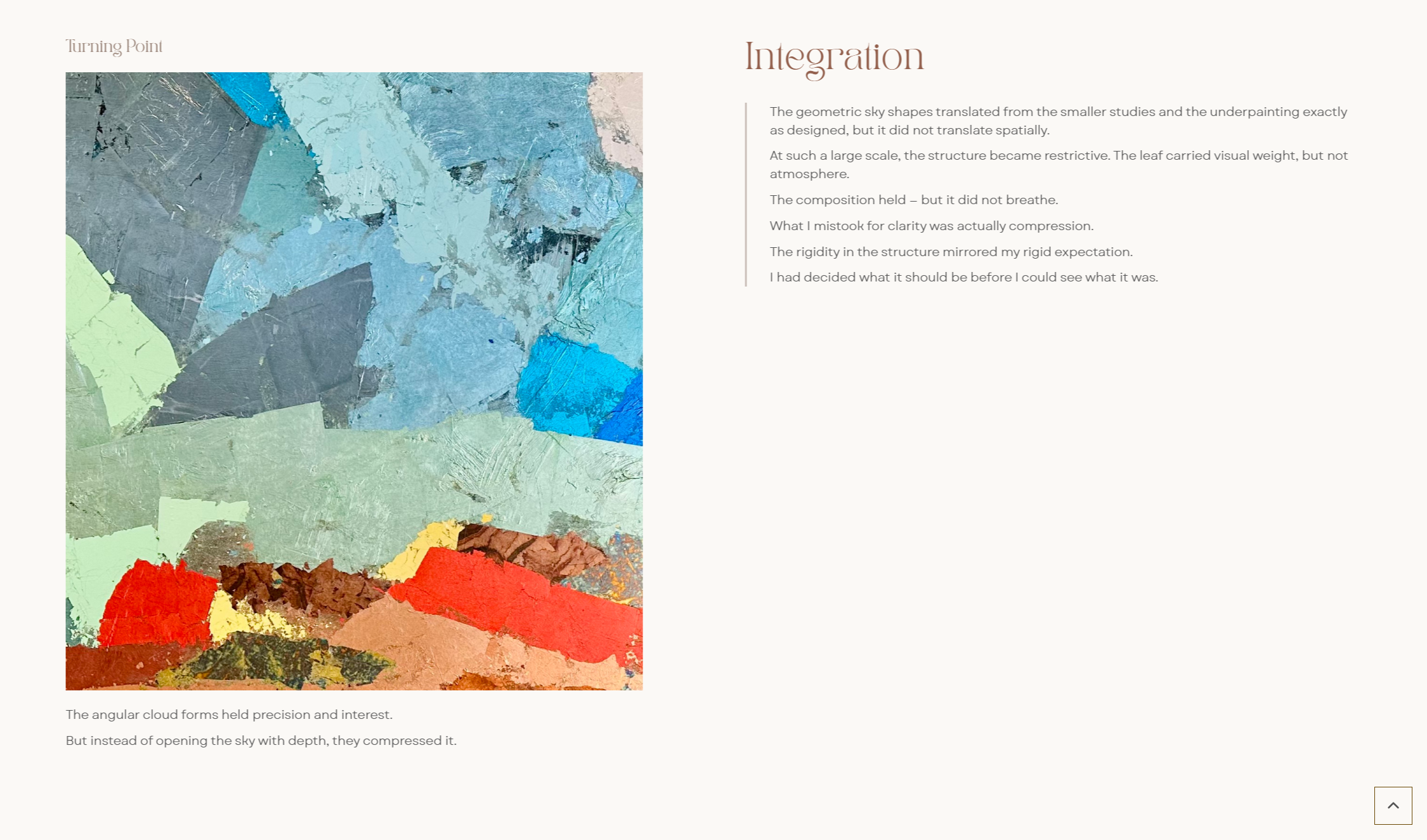 A detail image and retrospective reflection describing what the artist understands about the work in hindsight.