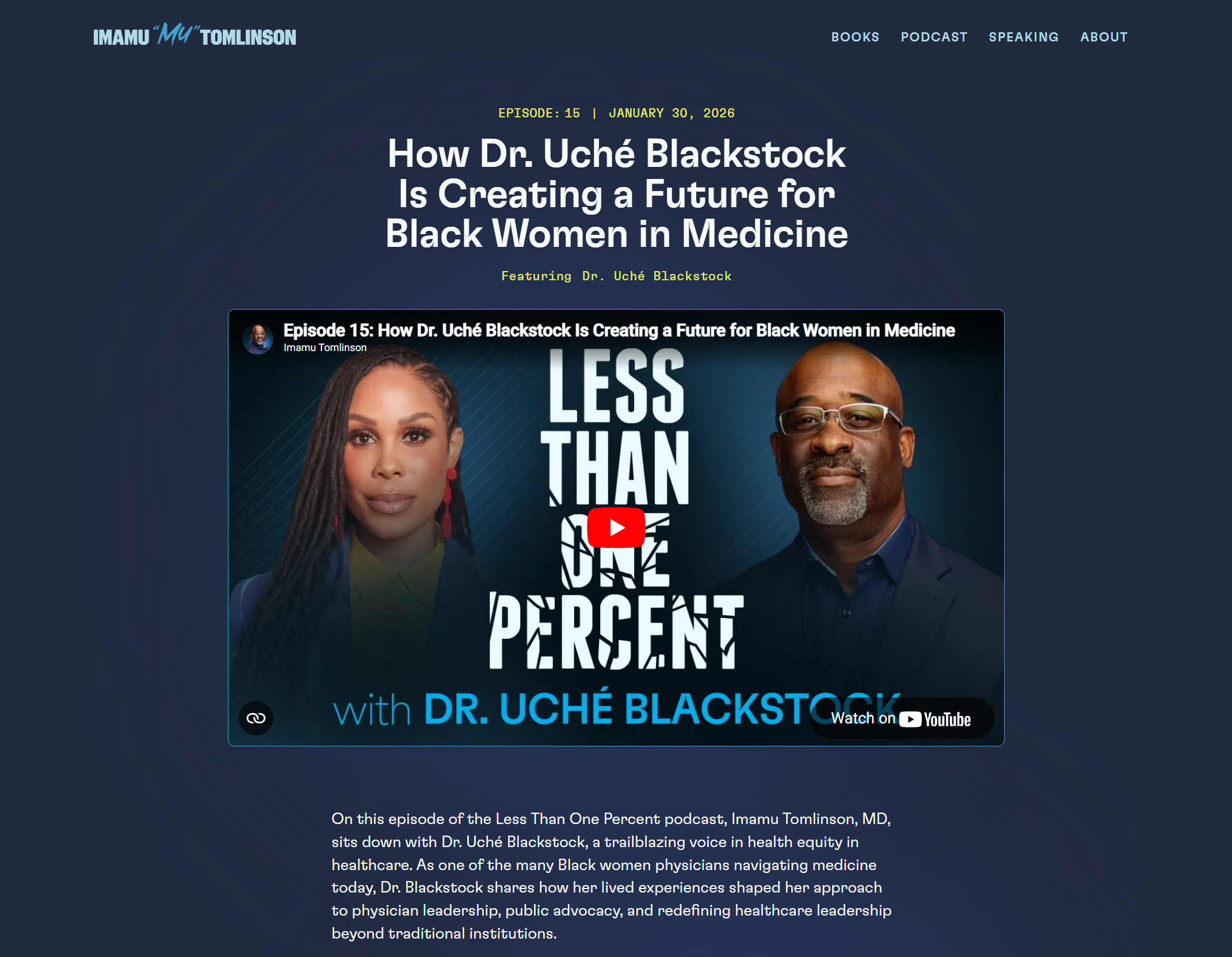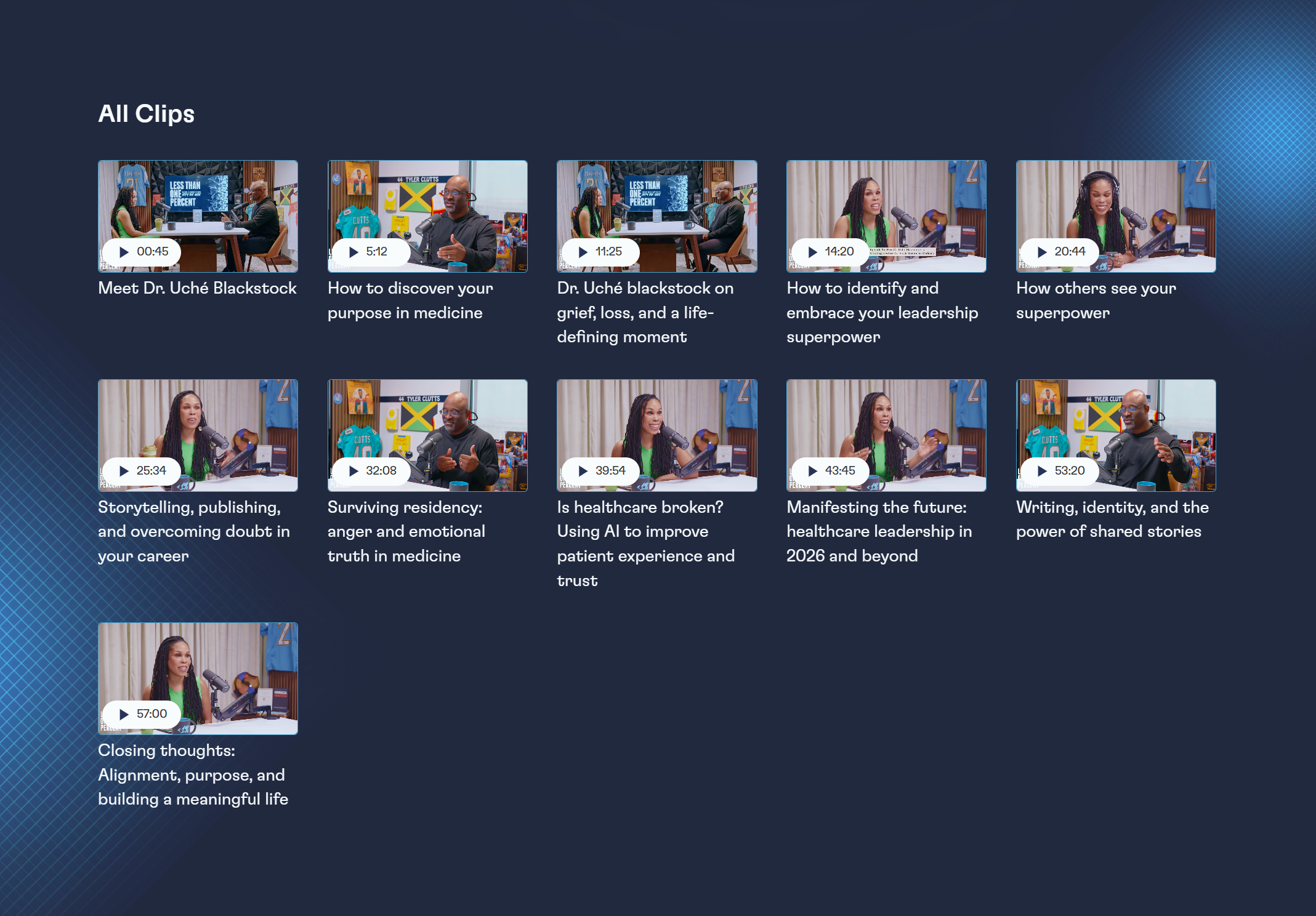 Each episode page is structured so the video/podcast is the main focus, followed by supporting content that strengthens SEO and user engagement.