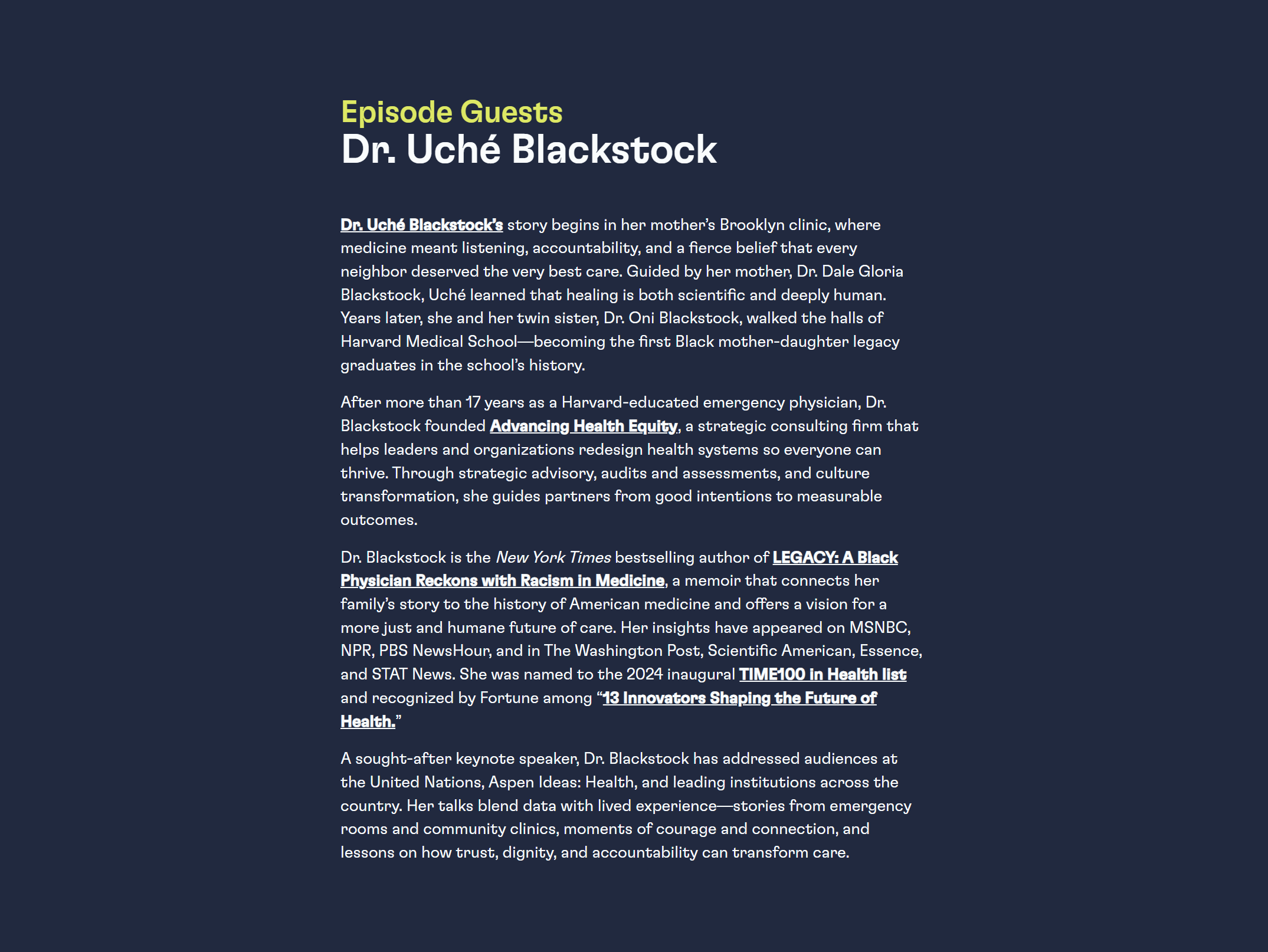 - Professionals seeking leadership + healthcare transformation insights